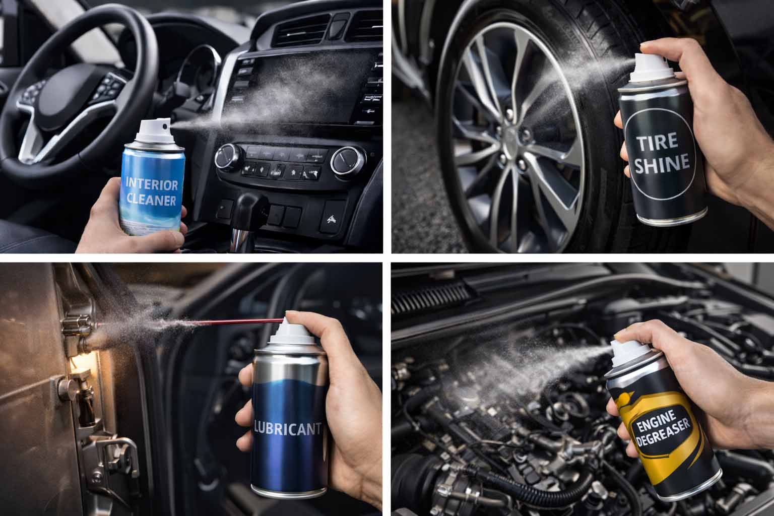 Các sản phẩm chăm sóc ô tô cần phải cân bằng giữa hiệu suất, độ an toàn và sự dễ sử dụng trong nhiều môi trường khác nhau. Từ việc làm sạch đến đóng gói nhiên liệu ô tô, bình xịt khí dung rất phổ biến trong ngành công nghiệp chăm sóc ô tô.